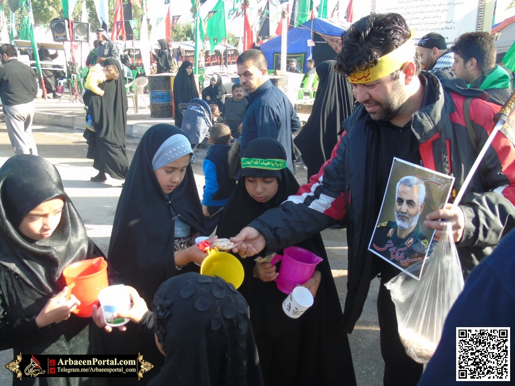 مرد مهربان در یک دست عکس سردار را داشت و در دستی دیگر کشمش و نخود مشهد، و آن را به کودکان هدیه میداد