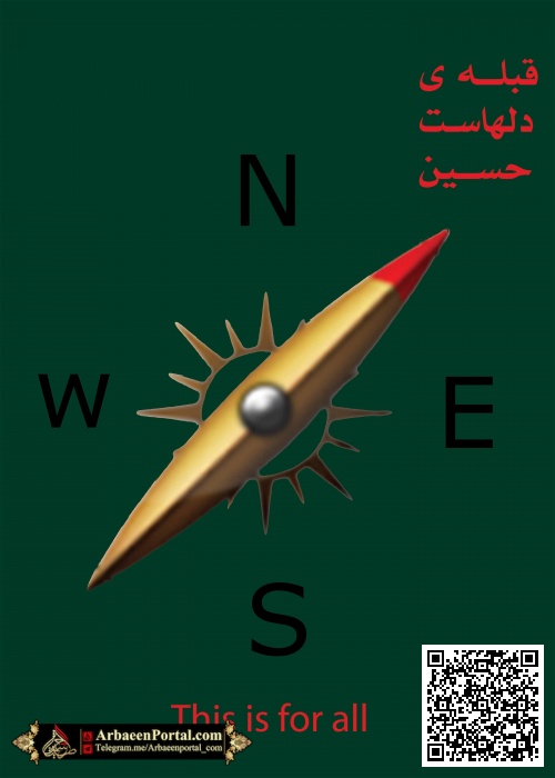 | توضیحات اثر | برای نمایش محبوبیت امام حسین در میان اقوام و ملل و ادیان ایشان با عنوان قبله دل ها یاد شده اند. و از قبله نما برای نمایش بهتر مطلب استفاده شده است. |